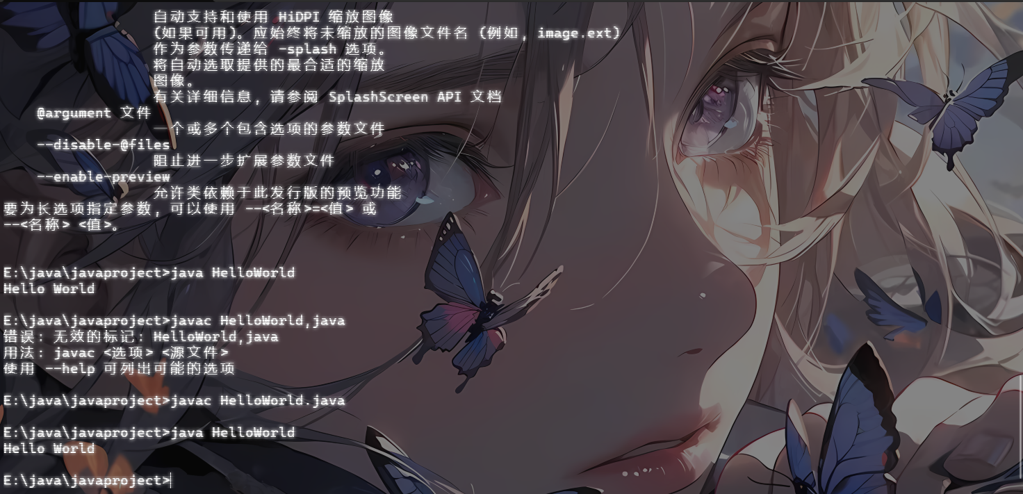 为什么这里是HelloWorld呢?其实是因为JVM虚拟机会根据我们传入的类名去查找对应的class文件,这也就涉及到一个类加载机制的问题了,后面再细说。